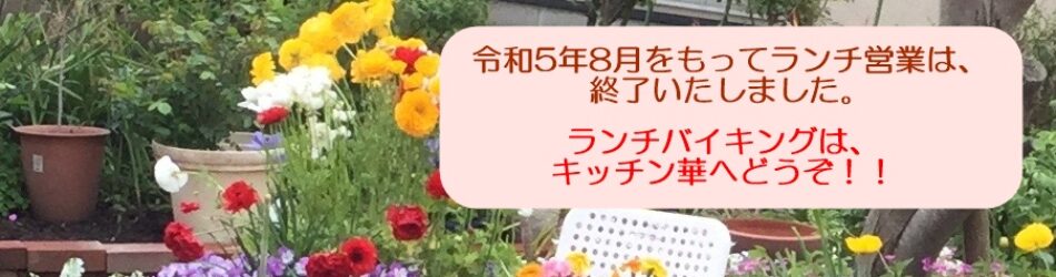 いつもご愛顧いただき誠にありがとうございます。 皆様のご要望もあり、細々とランチ営業を継続しておりましたが、このたび、ランチ営業を終了することとなりました。 人手不足とオーナーが高齢でもあり、「花の家」と「キッチン華」2 …